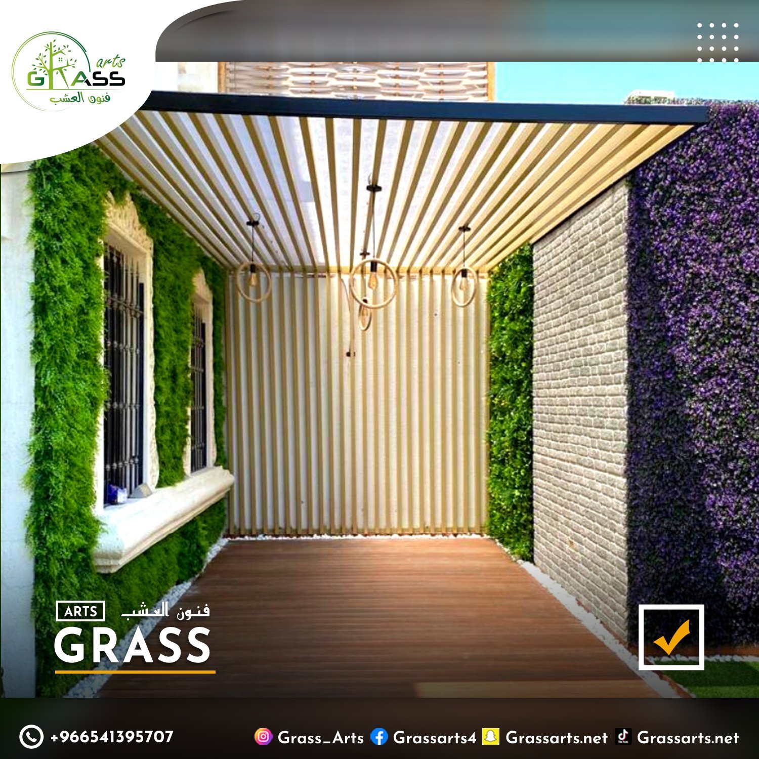 تركيب جميع أنواع الأكسسورات للحدائق جلسات ديكورية جاهزة و برجولات والكرات العشبية بالضافة إلى النباتات الأصطناعية والأنارات